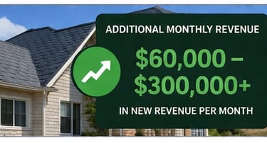 When you look at the revenue impact, the numbers become even more compelling. With average roofing projects ranging from $10,000 to $20,000 or more, even a modest number of additional jobs can significantly increase monthly revenue. For many companies, this translates to an additional $60,000 to $300,000+ in new revenue per month driven directly from the system. The focus is not just on more jobs, but on better jobs—homeowners who understand the value of quality work and are prepared to invest in their property.