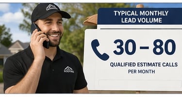 On a typical month, roofing companies using this system can expect a consistent volume of inbound estimate calls and booked appointments. Depending on the size of the service area and demand, it’s common to see anywhere from 30 to 80 qualified estimate opportunities generated each month. These are not cold leads—they are homeowners who have already provided project details, reviewed pricing expectations, and either scheduled directly or requested immediate contact. This significantly increases the efficiency of your sales process and reduces wasted time on unqualified inquiries.
