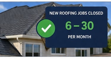 From those initial calls and scheduled estimates, a predictable portion will convert into closed roofing jobs. Most roofing companies operating with a structured follow-up process and solid reputation can expect to close roughly 20% to 40% of these opportunities. That means 6 to 30 new roofing jobs per month, depending on lead volume and internal sales performance. Because the leads are pre-qualified and budget-aware, the close rates are typically higher than traditional marketing channels.