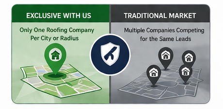 To protect the value of these opportunities, we operate with a strict exclusivity model. We only partner with one roofing company per city or defined service radius, ensuring you are not competing against other contractors using the same system. This eliminates the common issue of multiple companies chasing the same lead and driving prices down. Instead, you receive exclusive access to the leads generated in your area, allowing you to position your services based on quality, trust, and professionalism—not just price. By limiting access, we ensure that our partners receive the highest-quality opportunities and are able to secure more profitable, higher-value roofing projects within their market.